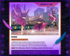 “The show itself is an action-packed roller coaster of old and new school street dance, classical and contemporary ballet, physical comedy, beat boxing, and even some singing! To call this a “dance show”, is to sell it short – this piece is a theatrical extravaganza.” (***** aussietheatre.com)