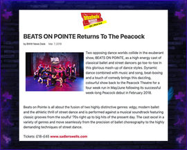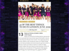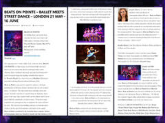 “Beats on Pointe seems to seamlessly mix the different styles to create a show which is inspiring, energetic and a joy to watch… A perfect family show, Beats on Pointe is sure to be a hit with any age range and will have audiences grinning from ear to ear as they watch the magnificent tricks and stunning choreography.” (***** londontheatre1.com)